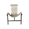 Iron chair with hand woven and stitched English saddle light grey leather