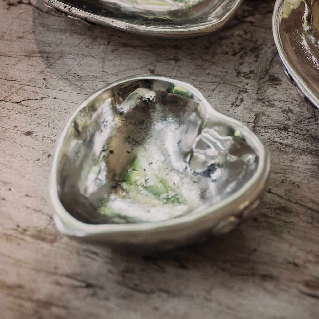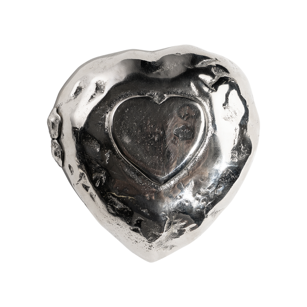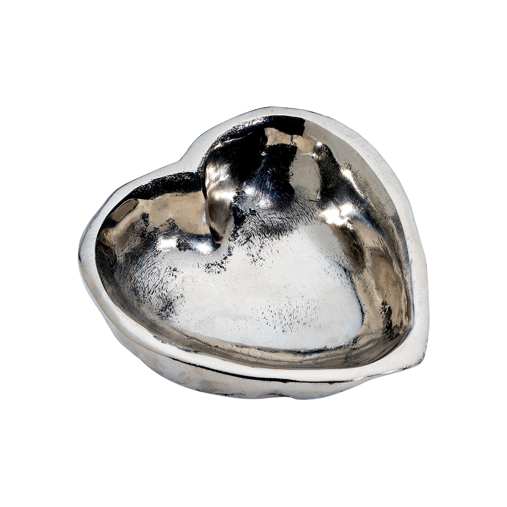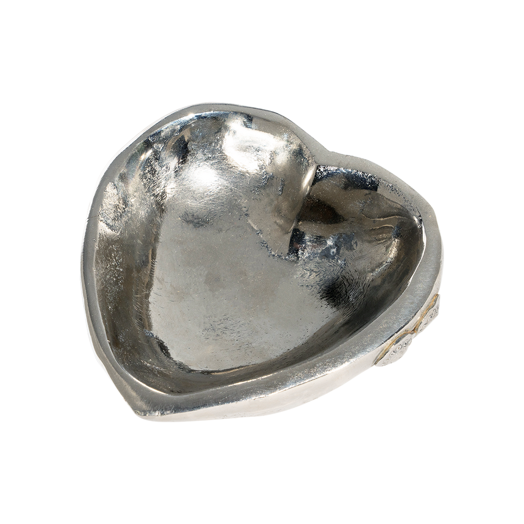 Nickel plated small wax cast iron heart dish with small heart back
