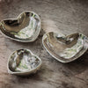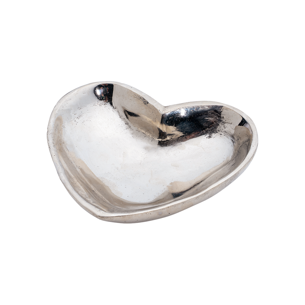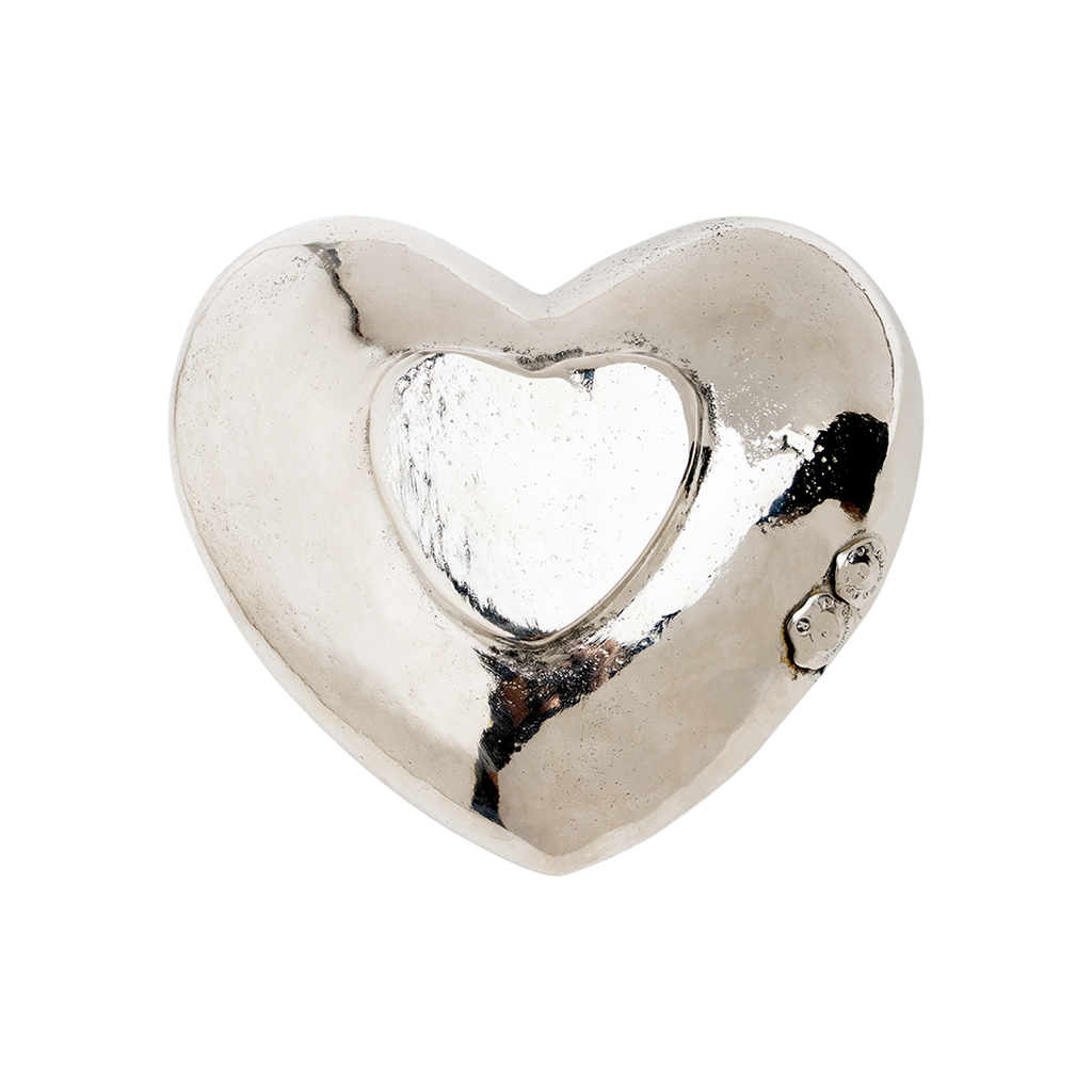 Large wax cast iron heart dish with small heart back in nickel plate
