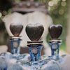 Blue mouthblown glass heart decanter with iron heart topper and base...two hearts beat as one . . .