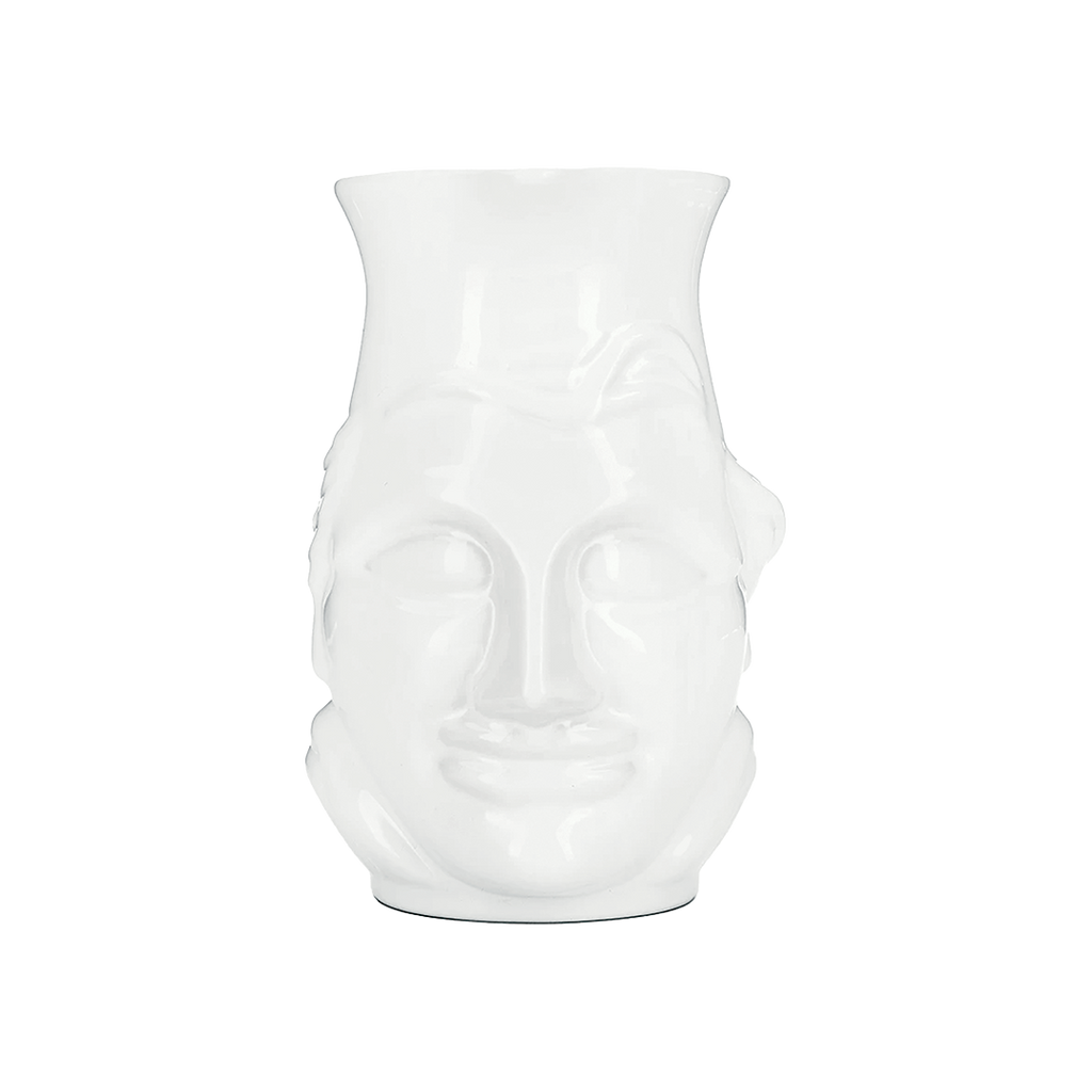Whimsical white ceramic "wiseman" pitcher with polished finish