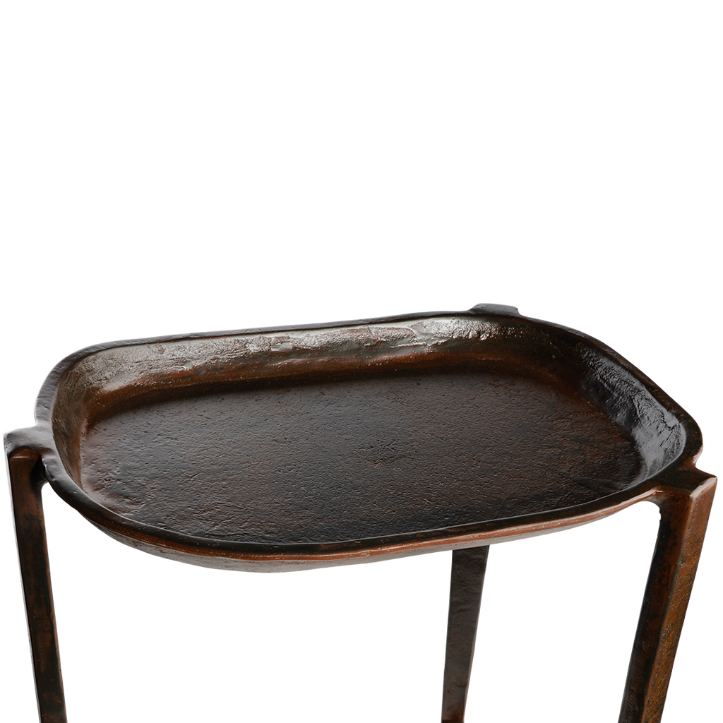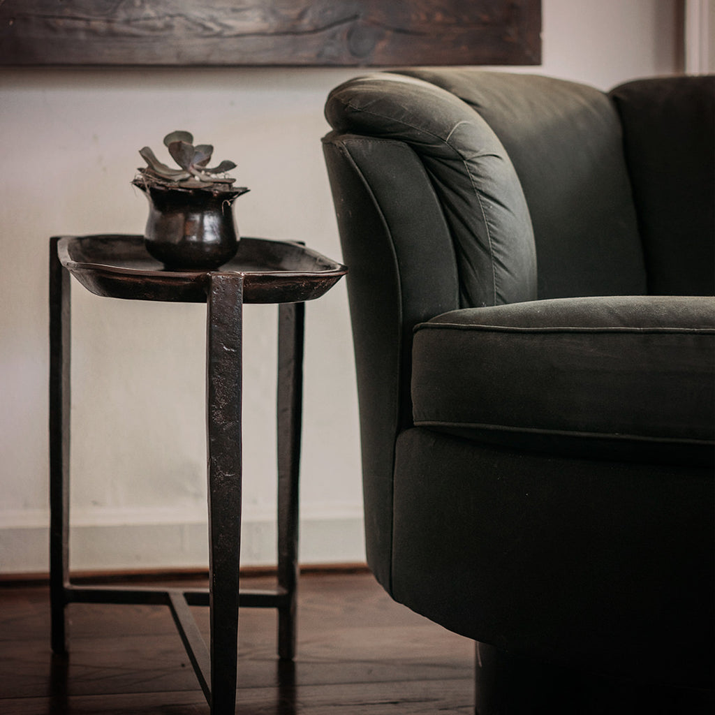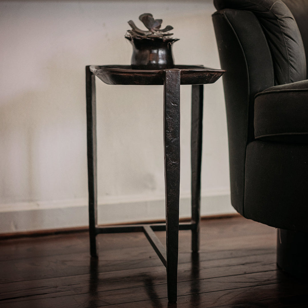 Solid, beautifully textured cast iron 3-legged table inspired by our blessing box nail