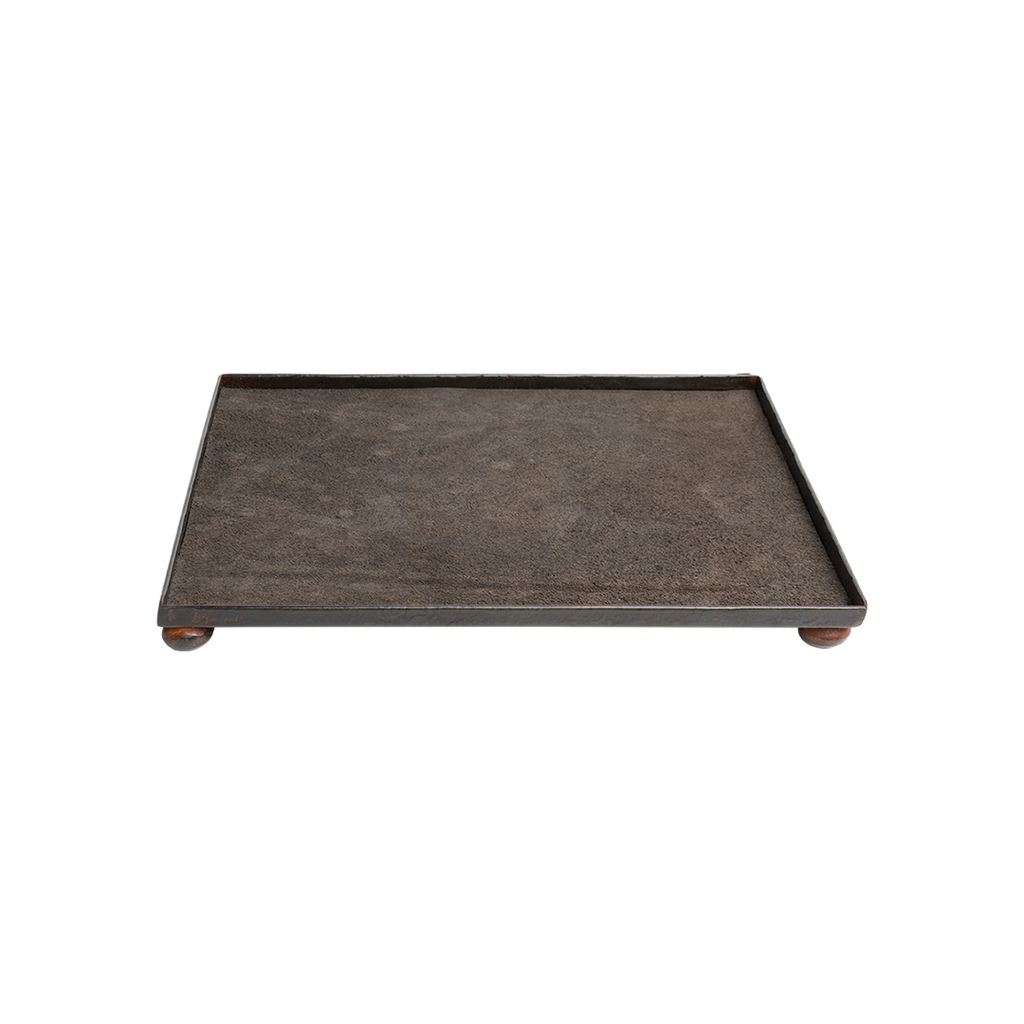 Iron vanity tray with balin feet. Lined with suede