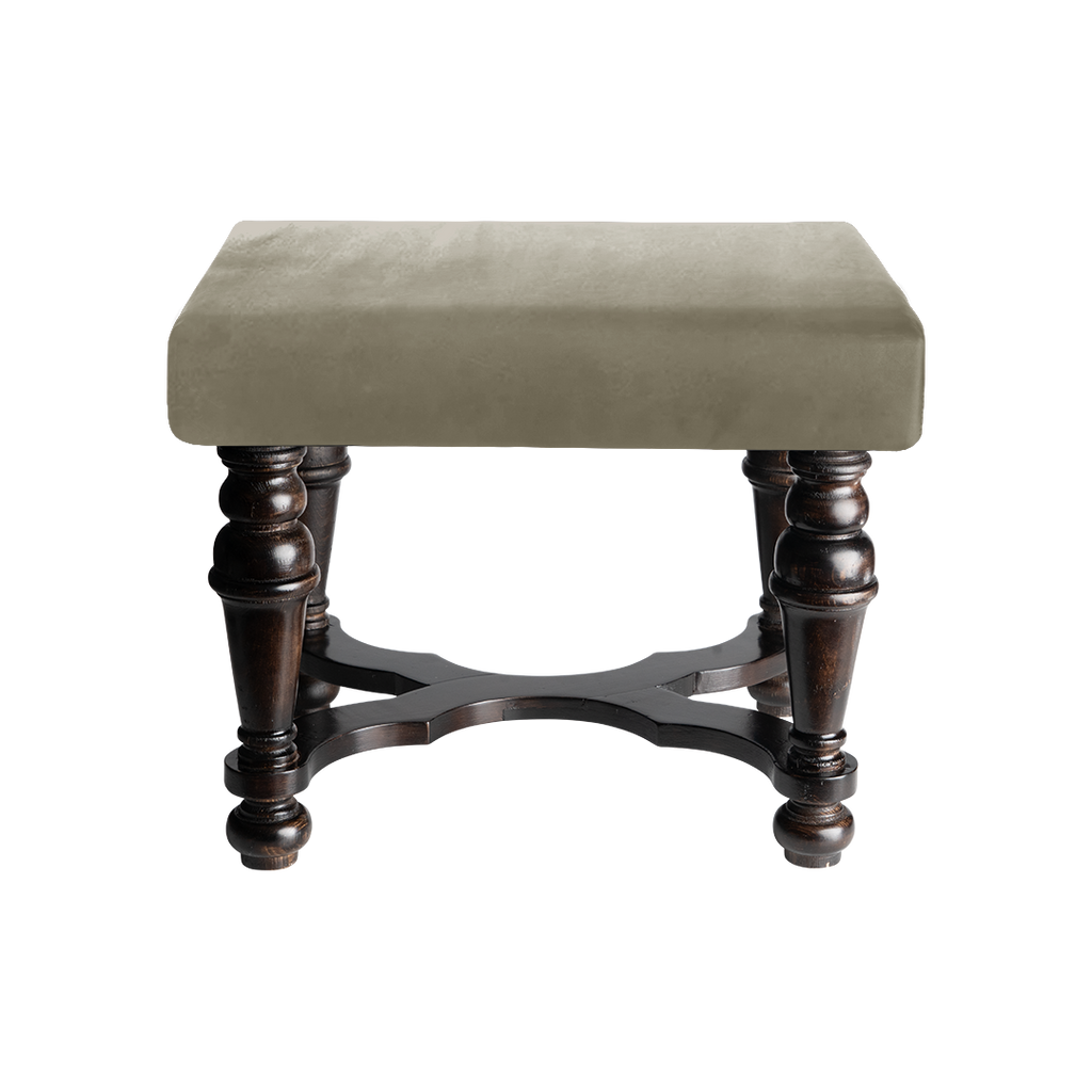 A certain shade of grey . . . elegantly hand carved wooden small bench with softened leather cushion . . . perfect for catching up