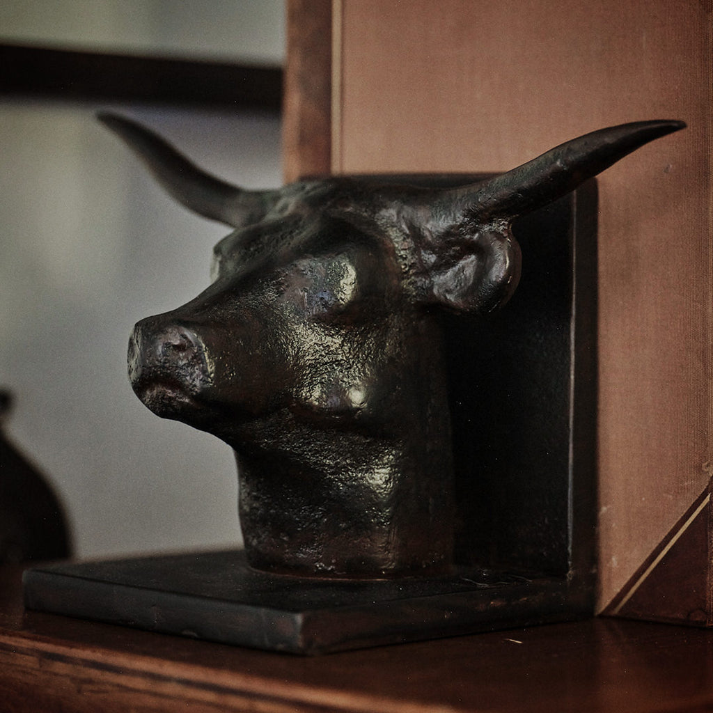 Wax cast iron longhorn bookends. Can also be used as door stops or paper weights . . .