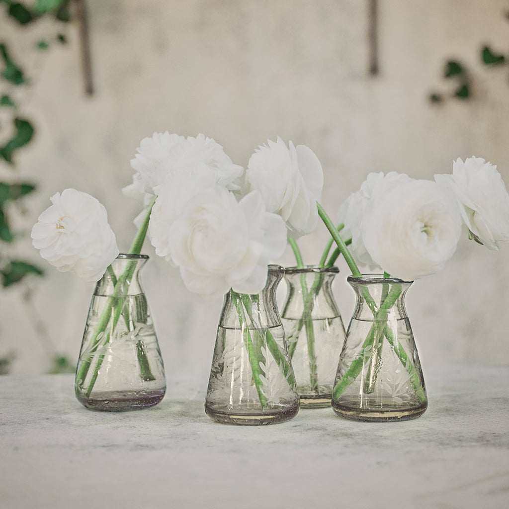 The perfect 'thank you' . . . charming clear mouthblown bud vase with classic pepita engraving . . . bud vase, olive oil or vinegar, milk/cream . . .