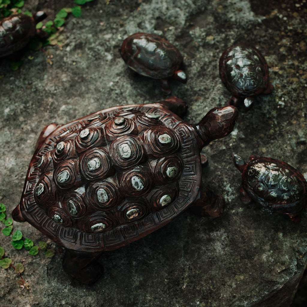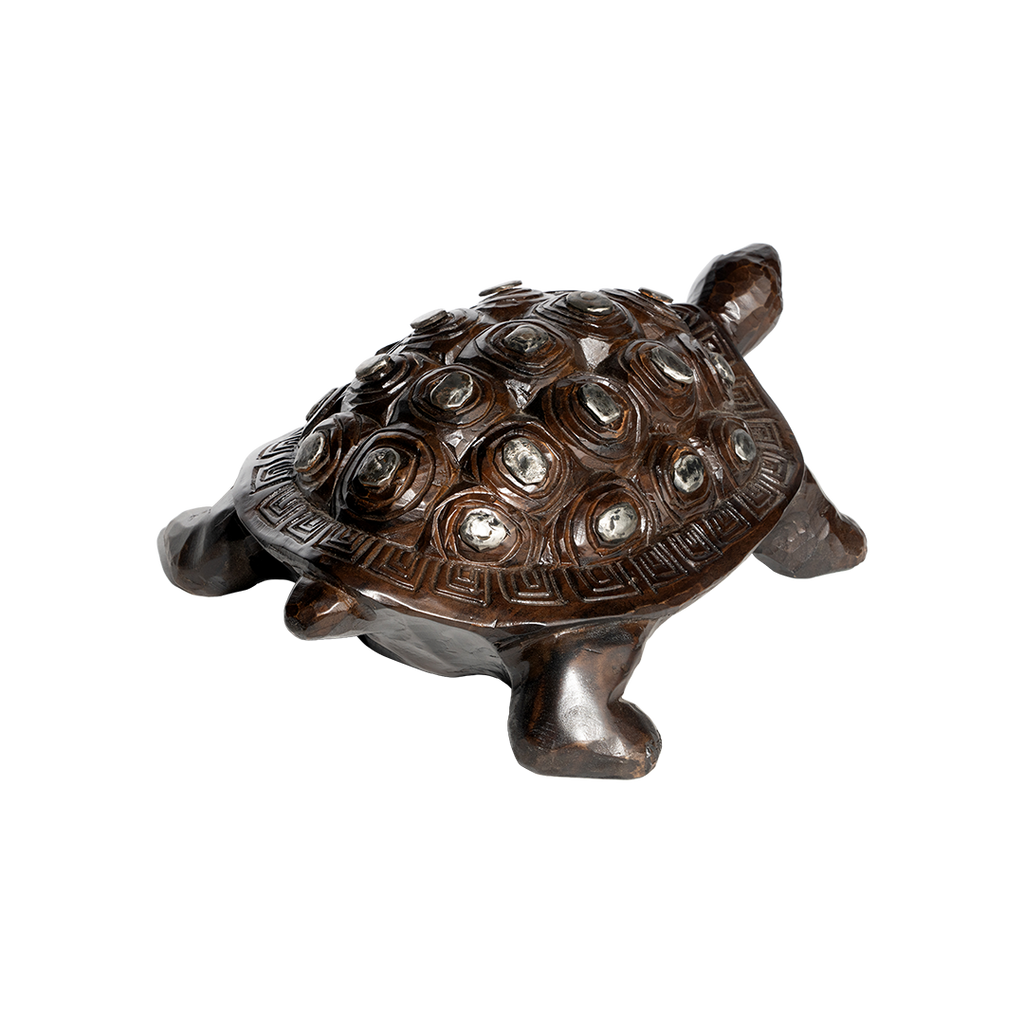 Handsome hand carved wooden turtle with polished cast iron tortoise shell pieces …a true collector's item!